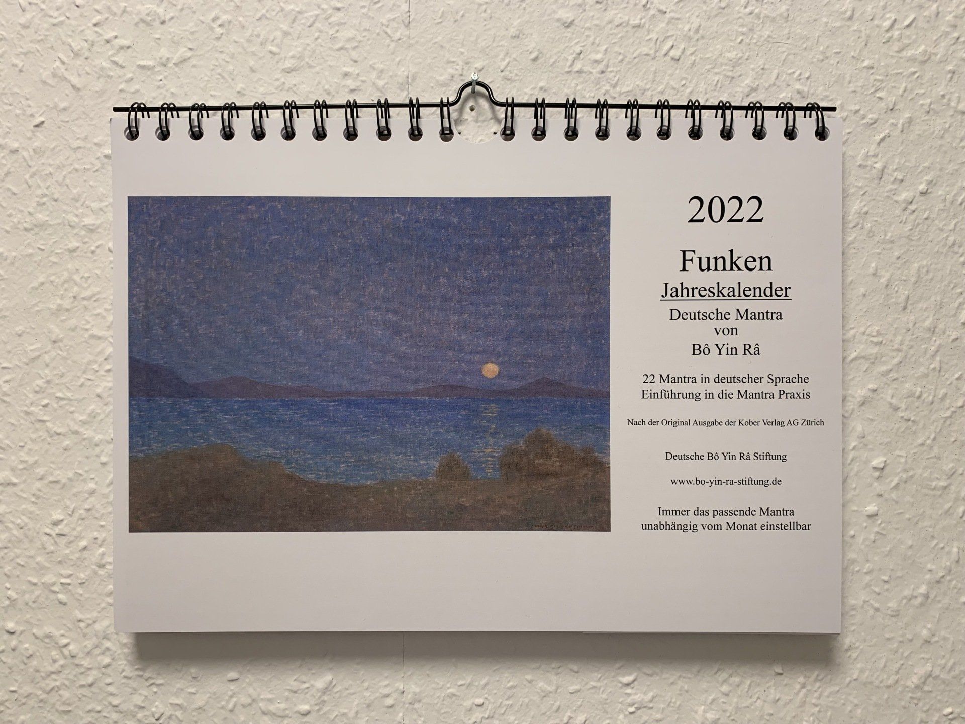 Auch für das Jahr 2023 haben wir wieder einen bebilderten Kalender mit den 22 Mantras aus dem Buch Funken - Mantra-Praxis erstellt. Der Kalender kann hier kostenlos bestellt werden, gültig solange der Vorrat reicht.