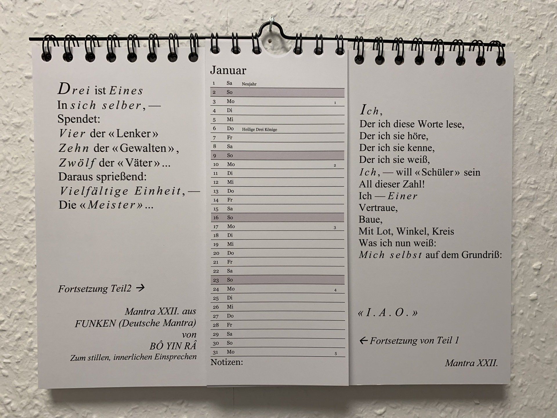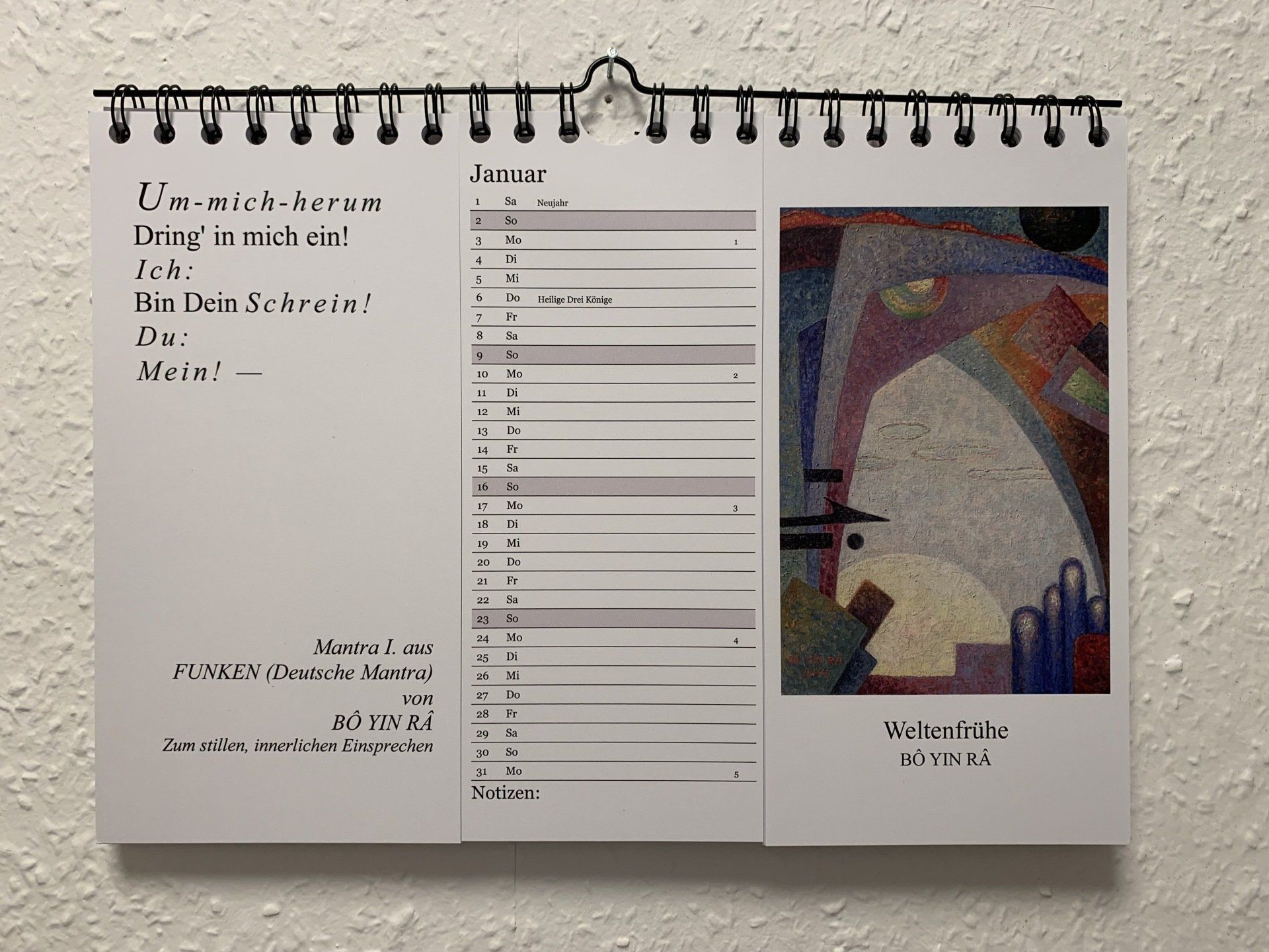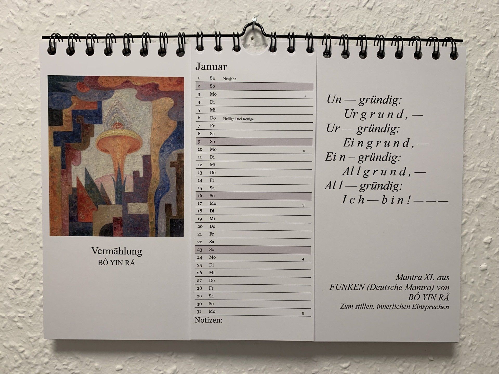 Unsere Stiftung hat für das kommende Jahr 2021 einen Kalender erstellt, der neben geistigen und weltlichen Bildern von Bô Yin Râ auch alle 22 Mantra aus dem Buch